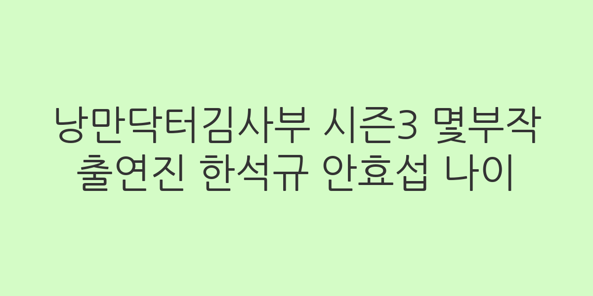 낭만닥터 김사부는 16부작 드라마이고 방송은 SBS에서 방송됩니다. 출연진은 한석규, 안효섭, 이성경, 김주헌, 진경, 소주연, 김민재, 변우민, 고상호, 임원희, 신동욱, 이경영 등이 출연했습니다.